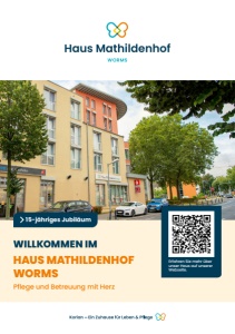 15-jähriges Jubiläum Erfahren Sie mehr über unser Haus auf unserer Webseite. LOREM IPSUM DOLOR SIT AMET WILLKOMMEN IM HAUSMATHILDENHOF WORMS Pflege und Betreuung mit Herz Haus Mathildenhof WORMS